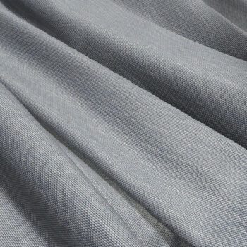 A wide width, recycled polyester blend sheer. In a slate blue coloration.