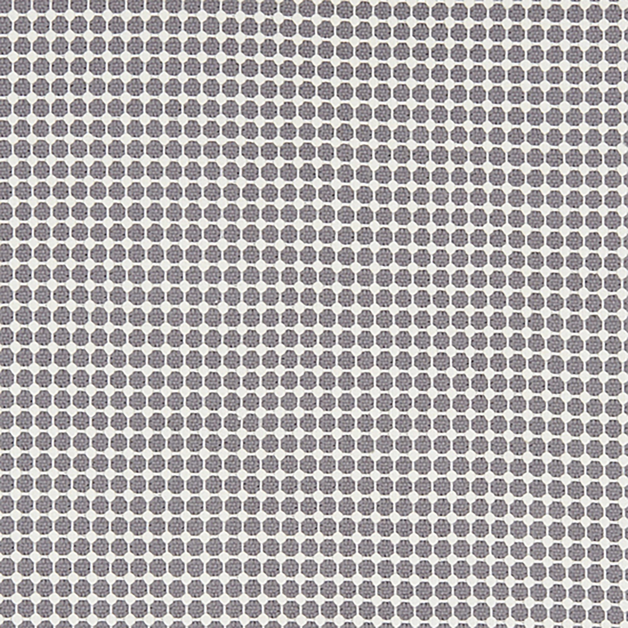 Eye catching dot design featured around embroidered textured weave embroidery in gray and ivory coloration.