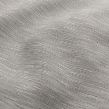 A transitional wide width, recycled polyester sheer in a subtly slubbed in a grey, cream and beige coloration.