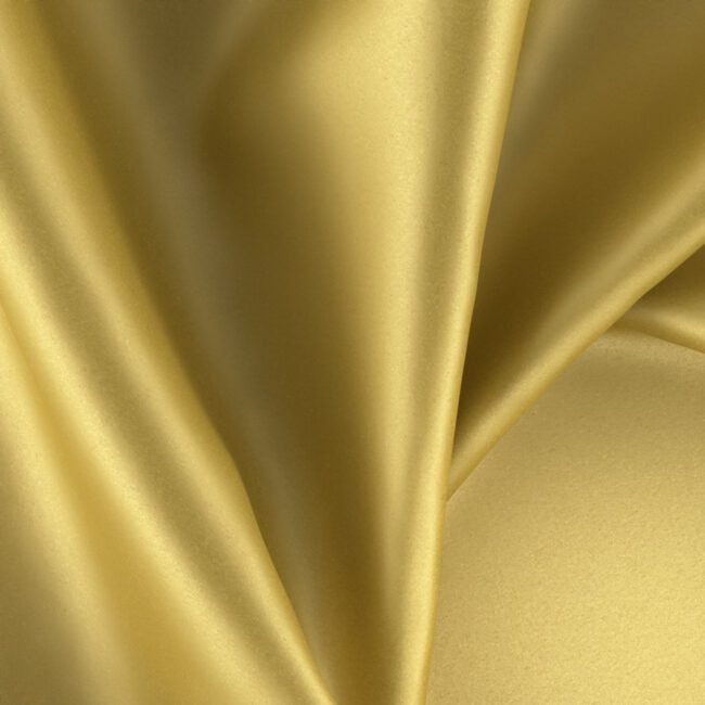 Pixie is a luxuriously soft wide-width sateen drapery fabric, made from 100% recycled polyester. Shown in a honey gold coloration. Ideal for residential and contract use.