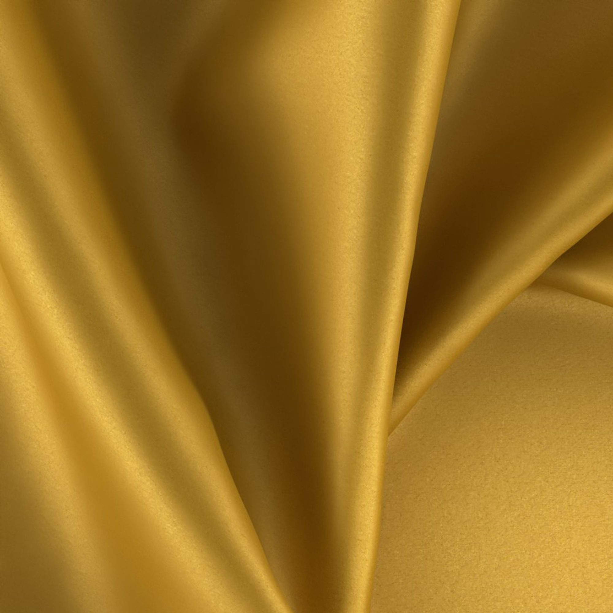 Pixie is a luxuriously soft wide-width sateen drapery fabric, made from 100% recycled polyester. Shown in a goldenrod coloration. Ideal for residential and contract use.