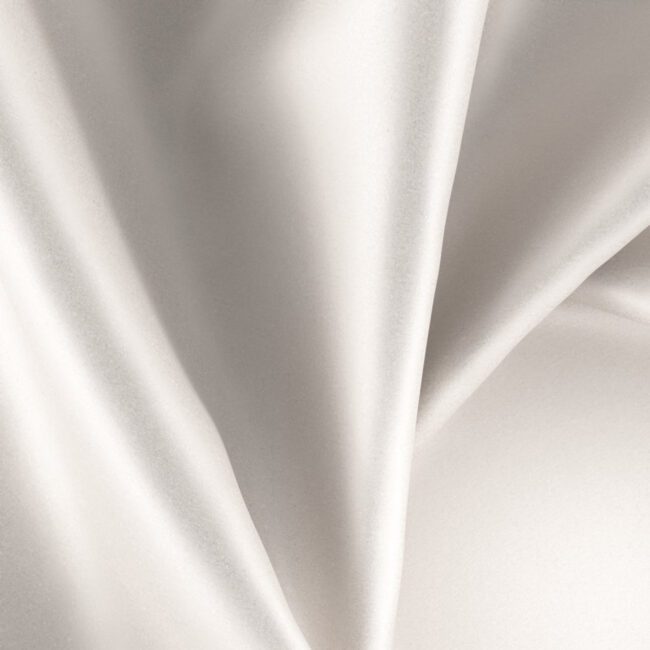 Pixie is a luxuriously soft wide-width sateen drapery fabric, made from 100% recycled polyester. Shown in a pearl coloration. Ideal for residential and contract use.