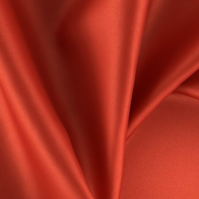 Pixie is a luxuriously soft wide-width sateen drapery fabric, made from 100% recycled polyester. Shown in a crimson red coloration. Ideal for residential and contract use.