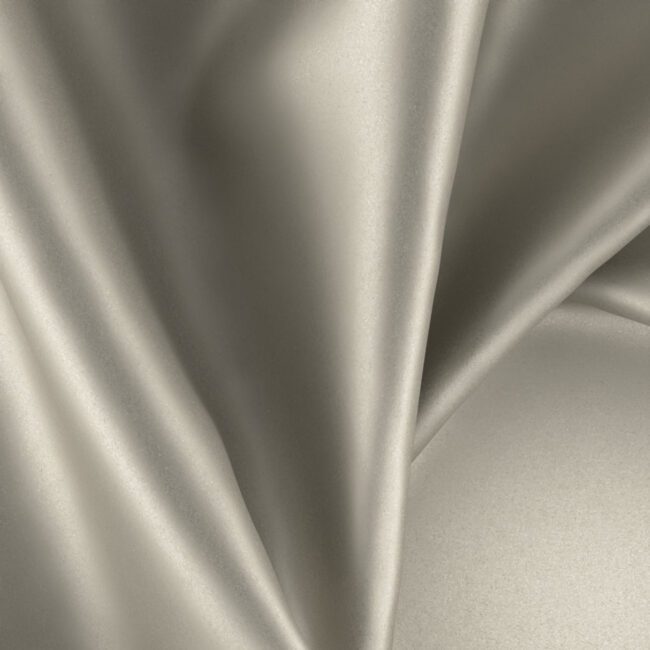 Pixie is a luxuriously soft wide-width sateen drapery fabric, made from 100% recycled polyester. Shown in a dove grey coloration. Ideal for residential and contract use.