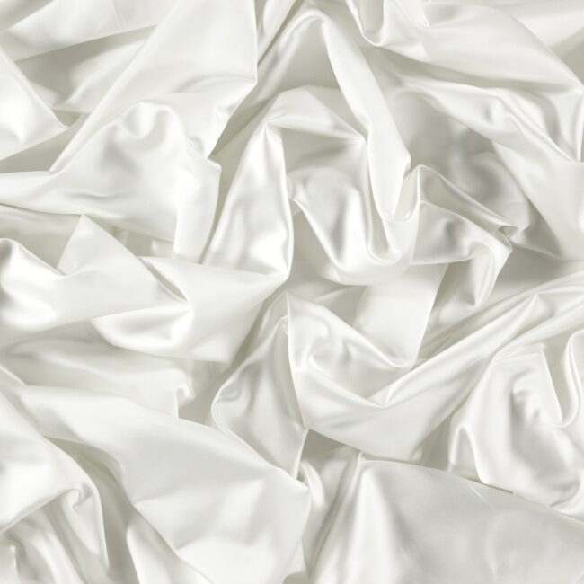 A soft and silky sateen fabric with enhanced durability. An off white coloration.
