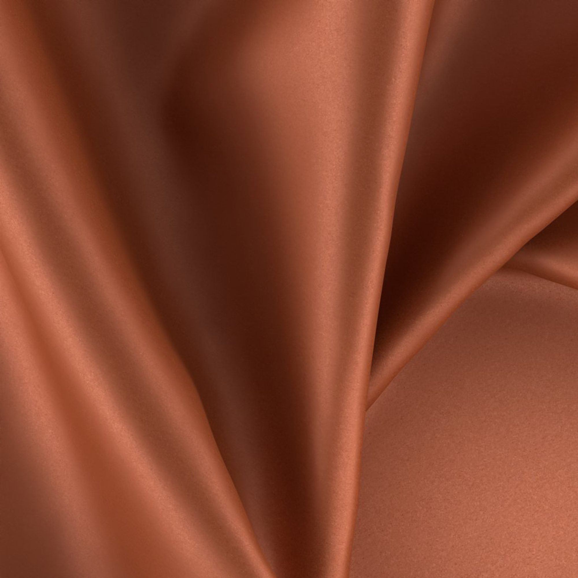 Pixie is a luxuriously soft wide-width sateen drapery fabric, made from 100% recycled polyester. Shown in a terracotta coloration. Ideal for residential and contract use.