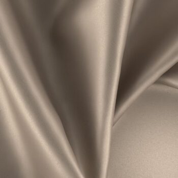 Pixie is a luxuriously soft wide-width sateen drapery fabric, made from 100% recycled polyester. Shown in a golden brown coloration. Ideal for residential and contract use.