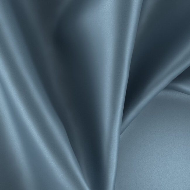 Pixie is a luxuriously soft wide-width sateen drapery fabric, made from 100% recycled polyester. Shown in a denim blue coloration. Ideal for residential and contract use.