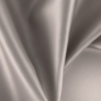 Pixie is a luxuriously soft wide-width sateen drapery fabric, made from 100% recycled polyester. Shown in a platinum coloration. Ideal for residential and contract use.