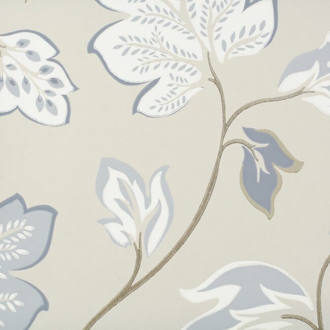 Add some flair to a room with this lively botanical wallpaper. Matte finish in tones of cream, rose, cool blue and gray.