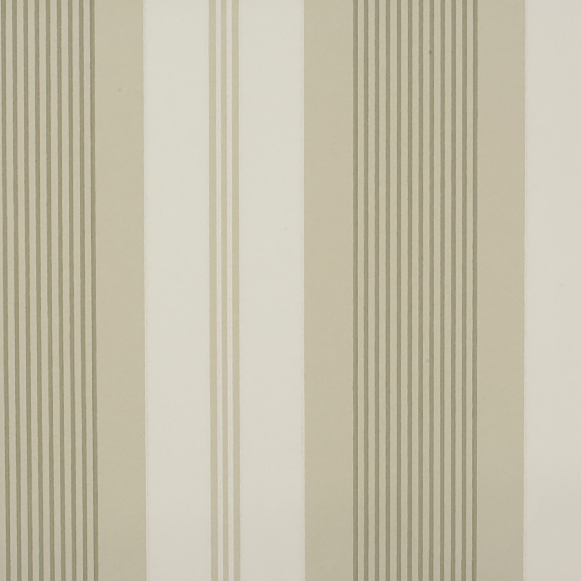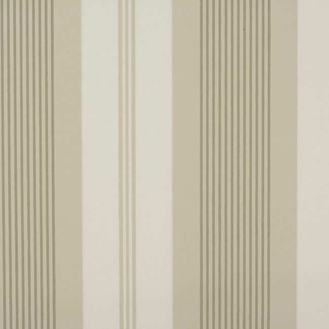 Traditional multi width stripe wallpaper, with a matte finish inneutral tones of ivory, beige and taupe.