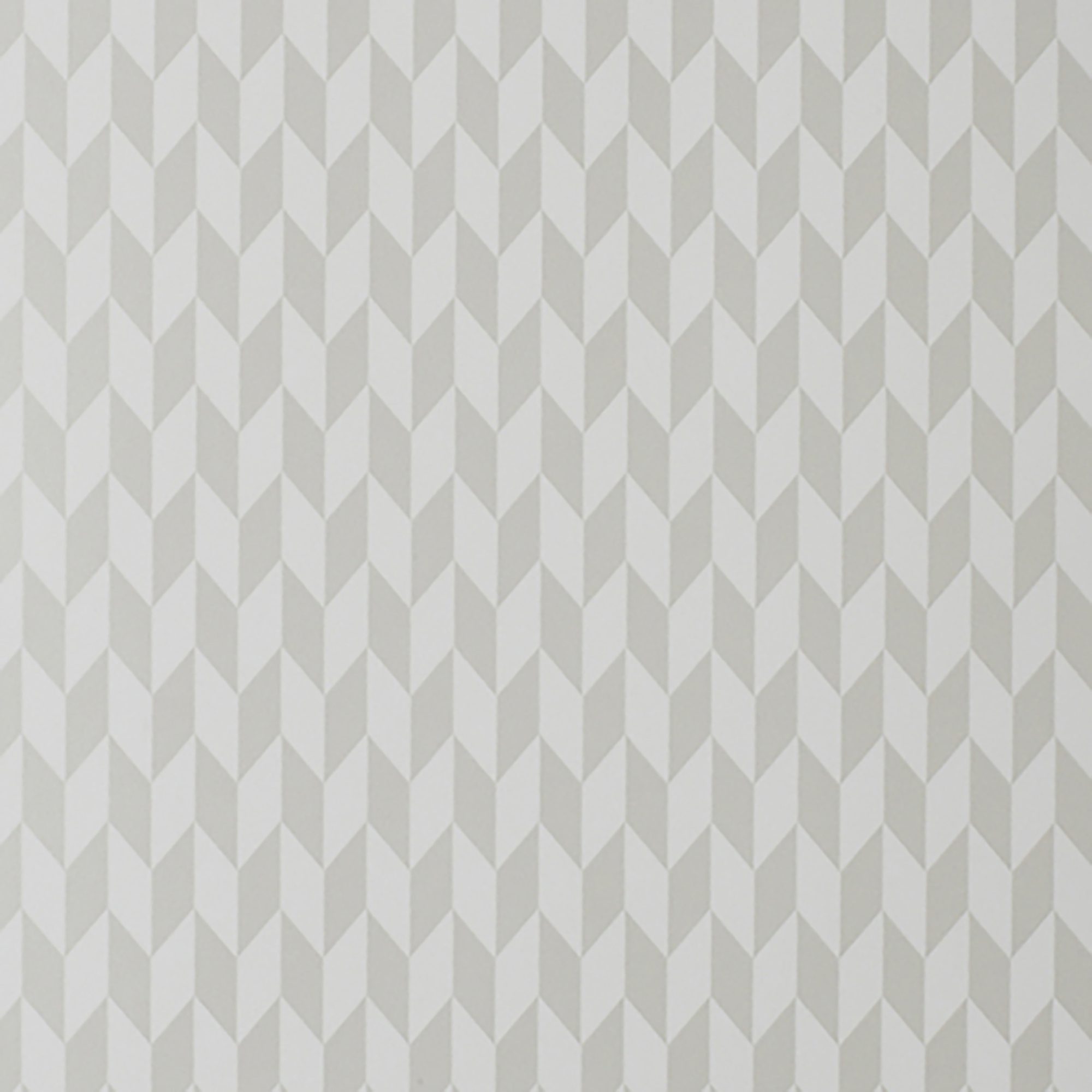 A chevron wallpaper design, in hues of ivory and metallic beige coloration.