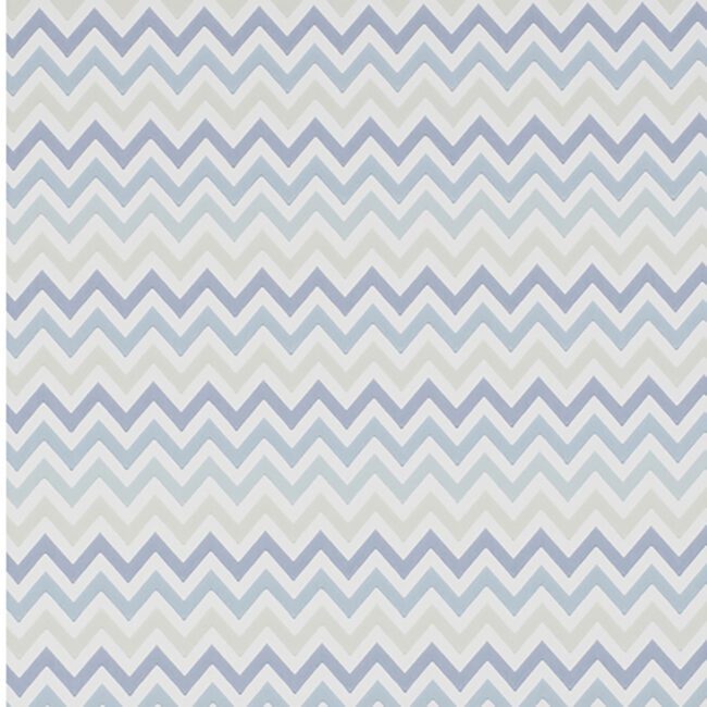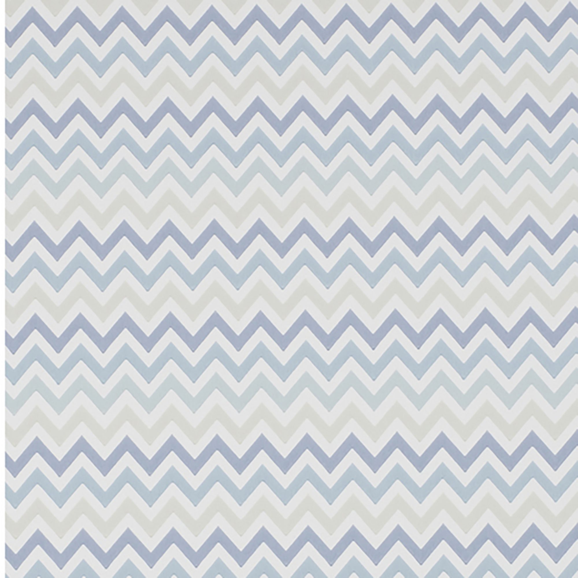 A small chevron wallpaper design, in hues of blue ranging from ice, to aqua, to dresden, alabaster and ivory coloration.