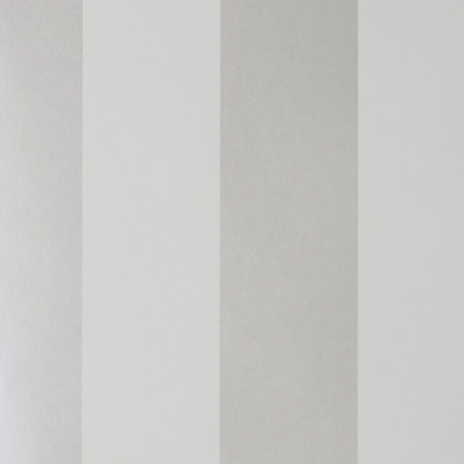Wide stripe wallpaper, with alternating colors of cream and metallic silver.