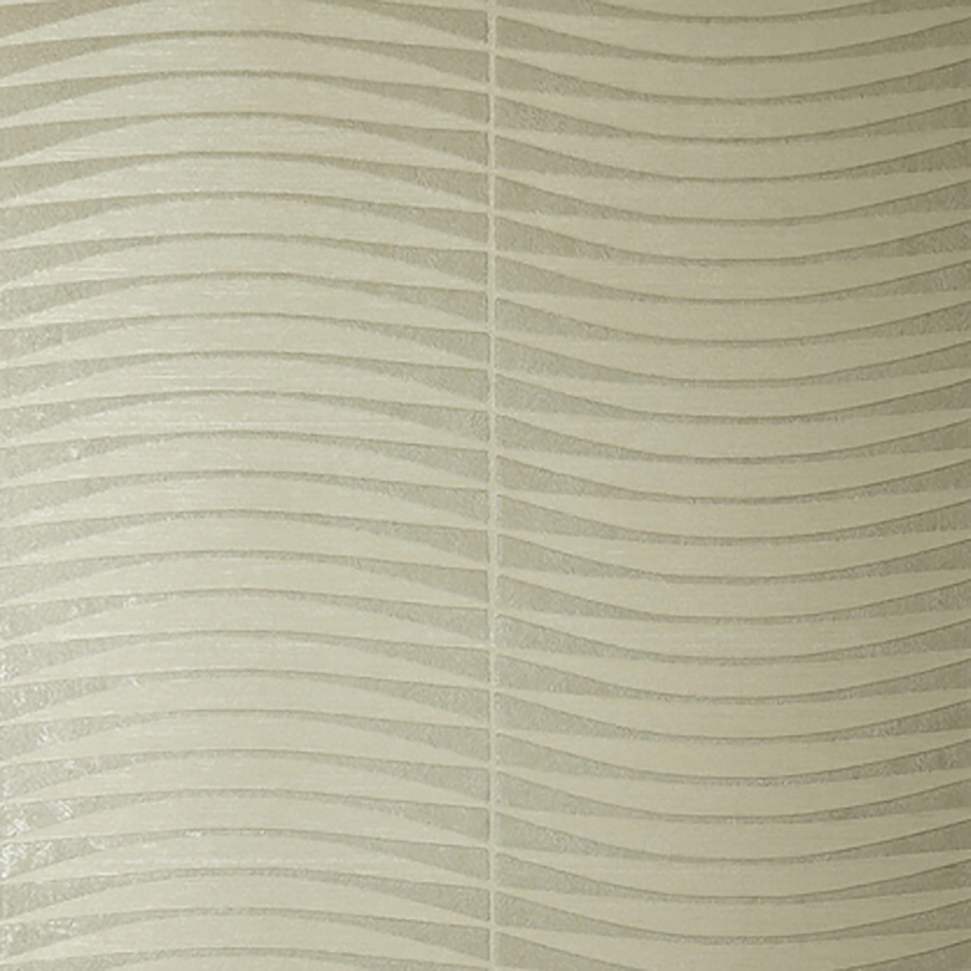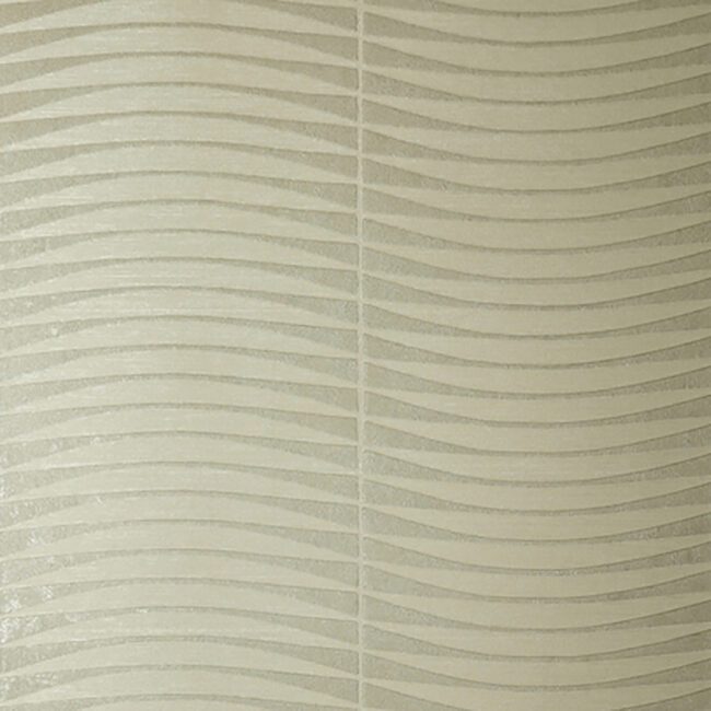 A waving stripe creates a beautiful dynamic between cream and platinum in this wallcovering.