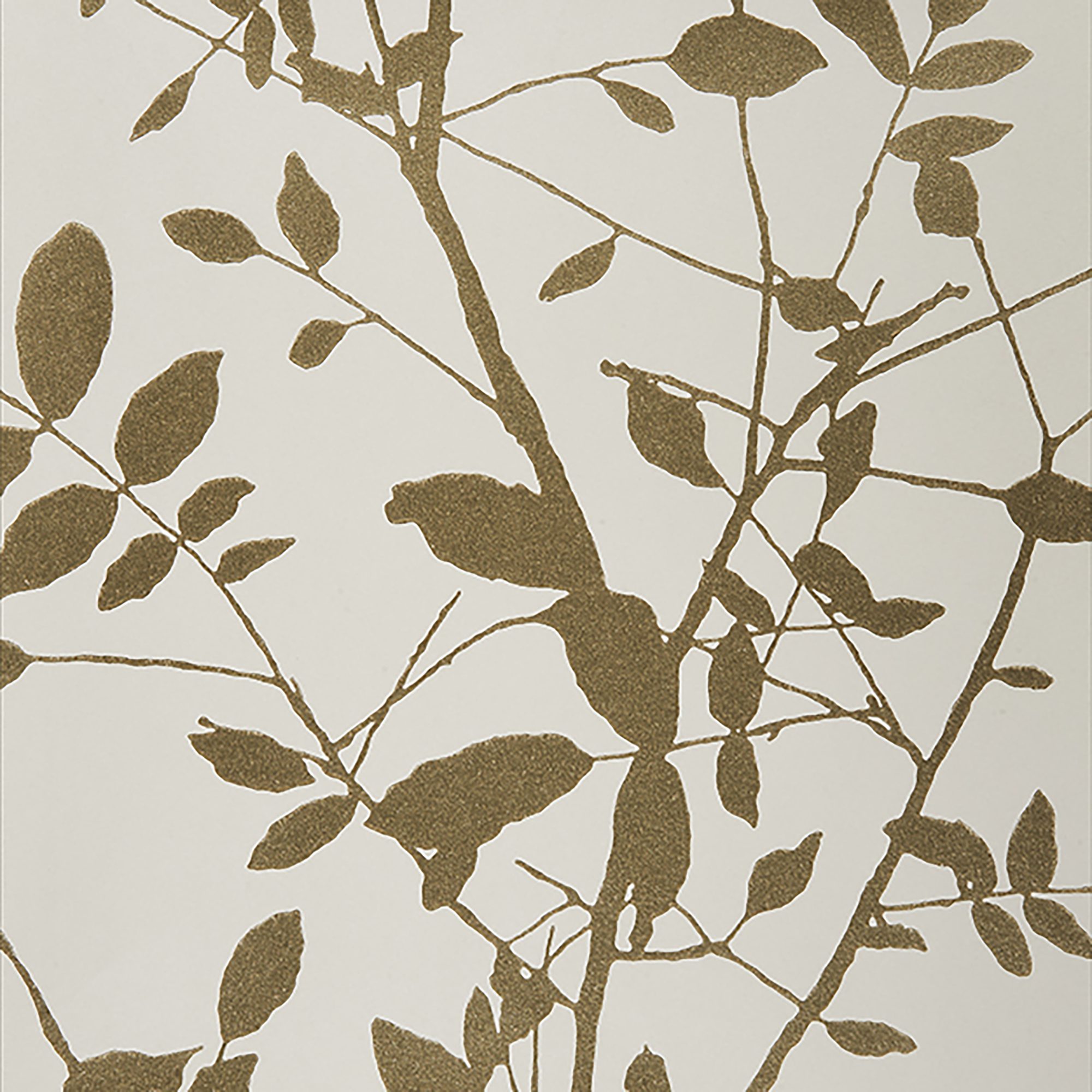 Give your room a feeling of tranquility with this opuent gold metallic leaf design, on a matte finish light sage ground.