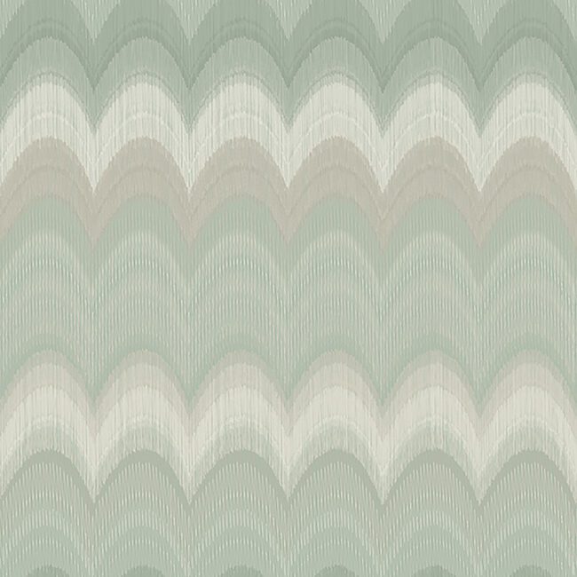 Update your look with this unique green wallpaper. A scallop wave design makes a stunning feature wall. In hues of sage green, taupe and cream coloration.