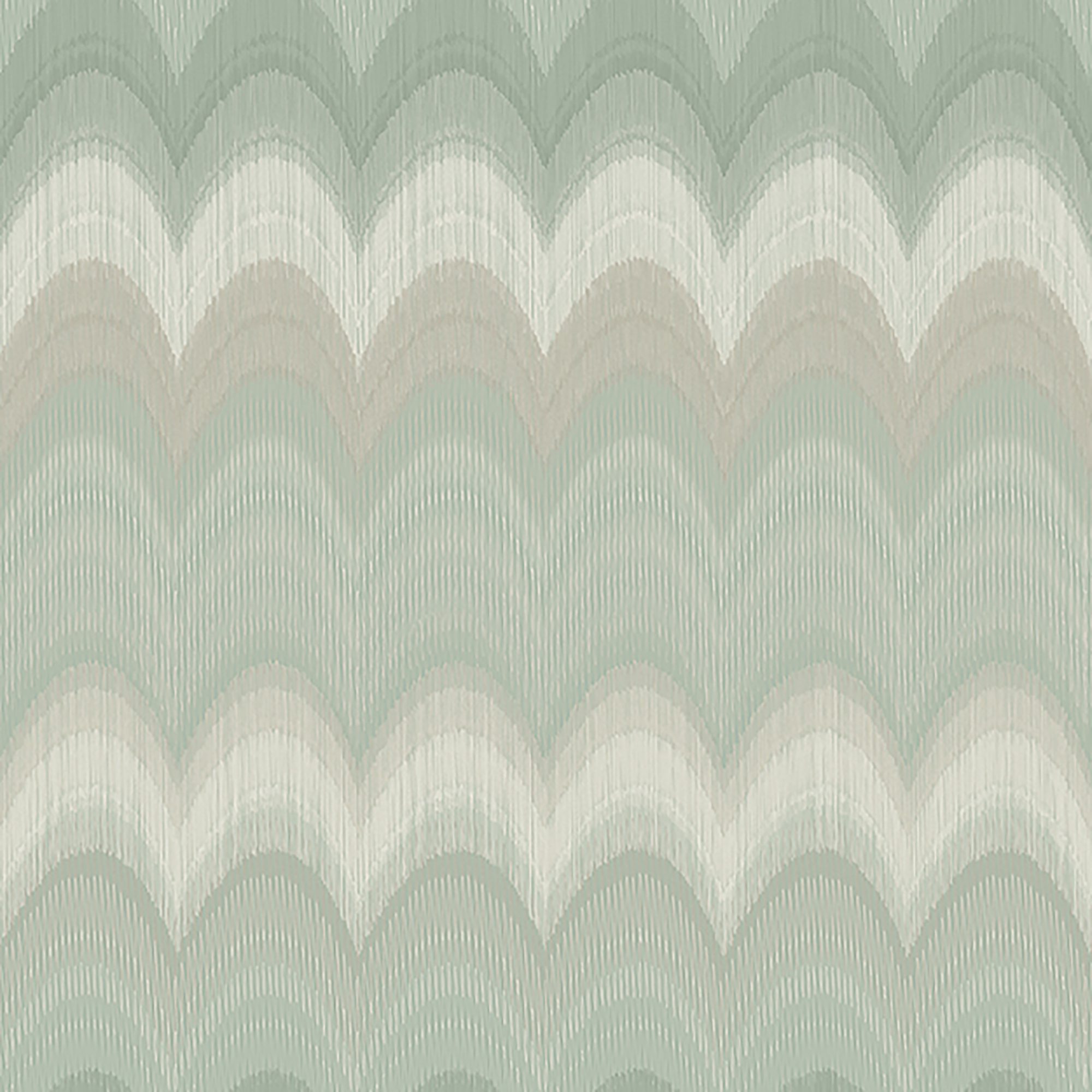 Update your look with this unique green wallpaper. A scallop wave design makes a stunning feature wall. In hues of sage green, taupe and cream coloration.