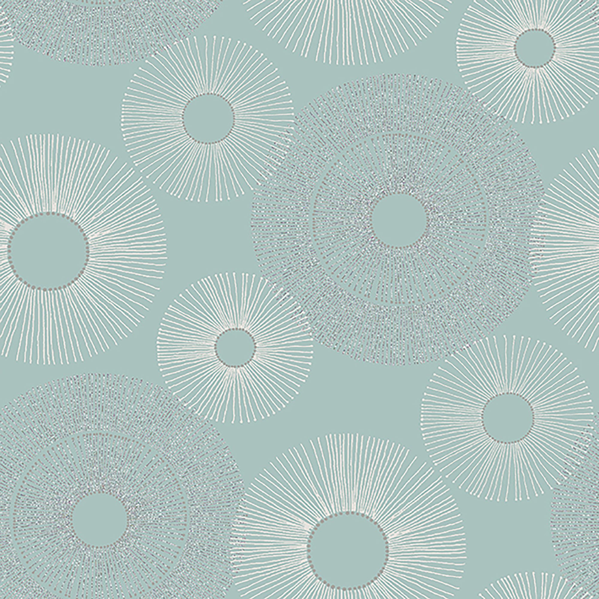 This blue wallpaper is a sparkling oasis. The modern star burst design is like a firework finale, shining with a holographic material. The robin's egg blue colorway is bright and cheerful.