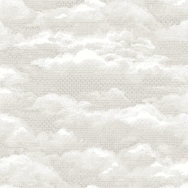 This wallpaper is constructed of tiny dots creating an abstract cloud like design, where one can dream peacefully amidst them. In a neutral grey and ivory coloration.