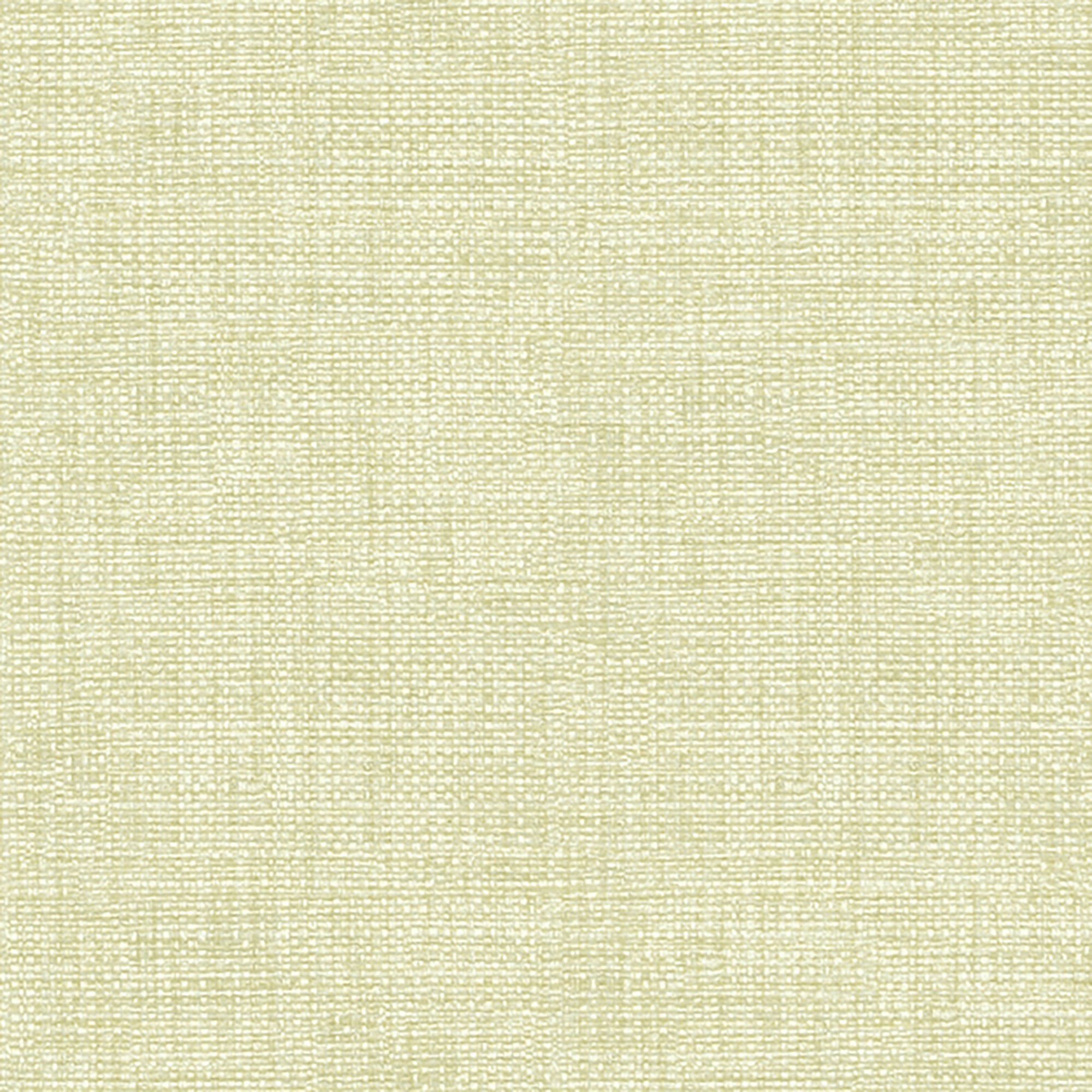 A faux grasscloth wallpaper in soft yellow and cream tones.