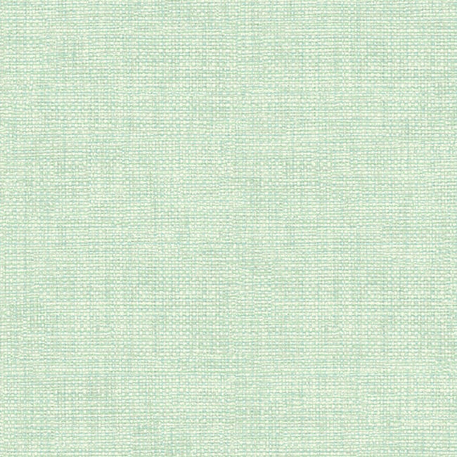 A faux grasscloth wallpaper in hues of light blue, taupe and cream coloration.