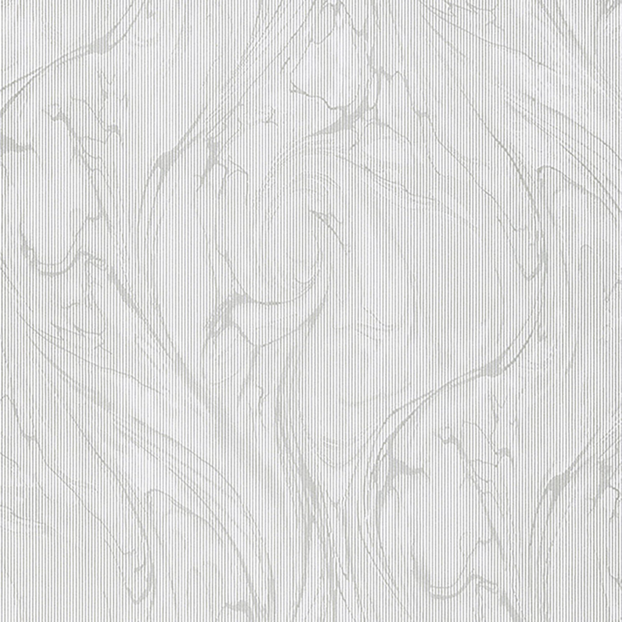 This wallpaper features a modern watercoloring effect with a verticle stripe throughout the design. Featured in white and metallic silver.