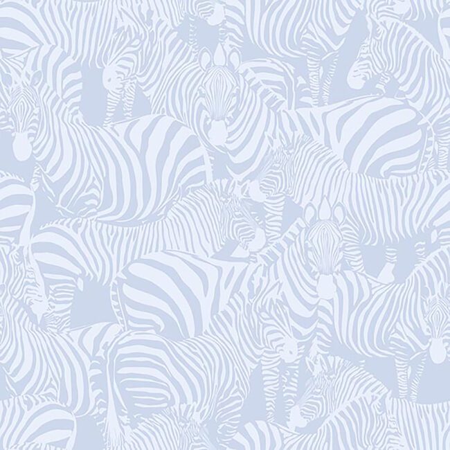 Fun zebra collage wallpaper design. Tone on tone silver blue hues with a pearlescent finish.