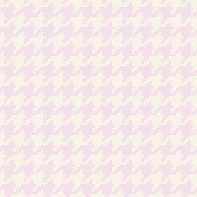 Large houndstooth motif wallpaper with pearlescent finish, pink and cream coloration.