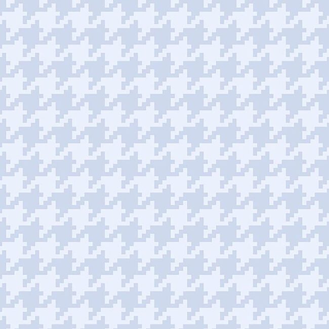 Large houndstooth motif wallpaper with pearlescent finish, tone on tone silver blue coloration.