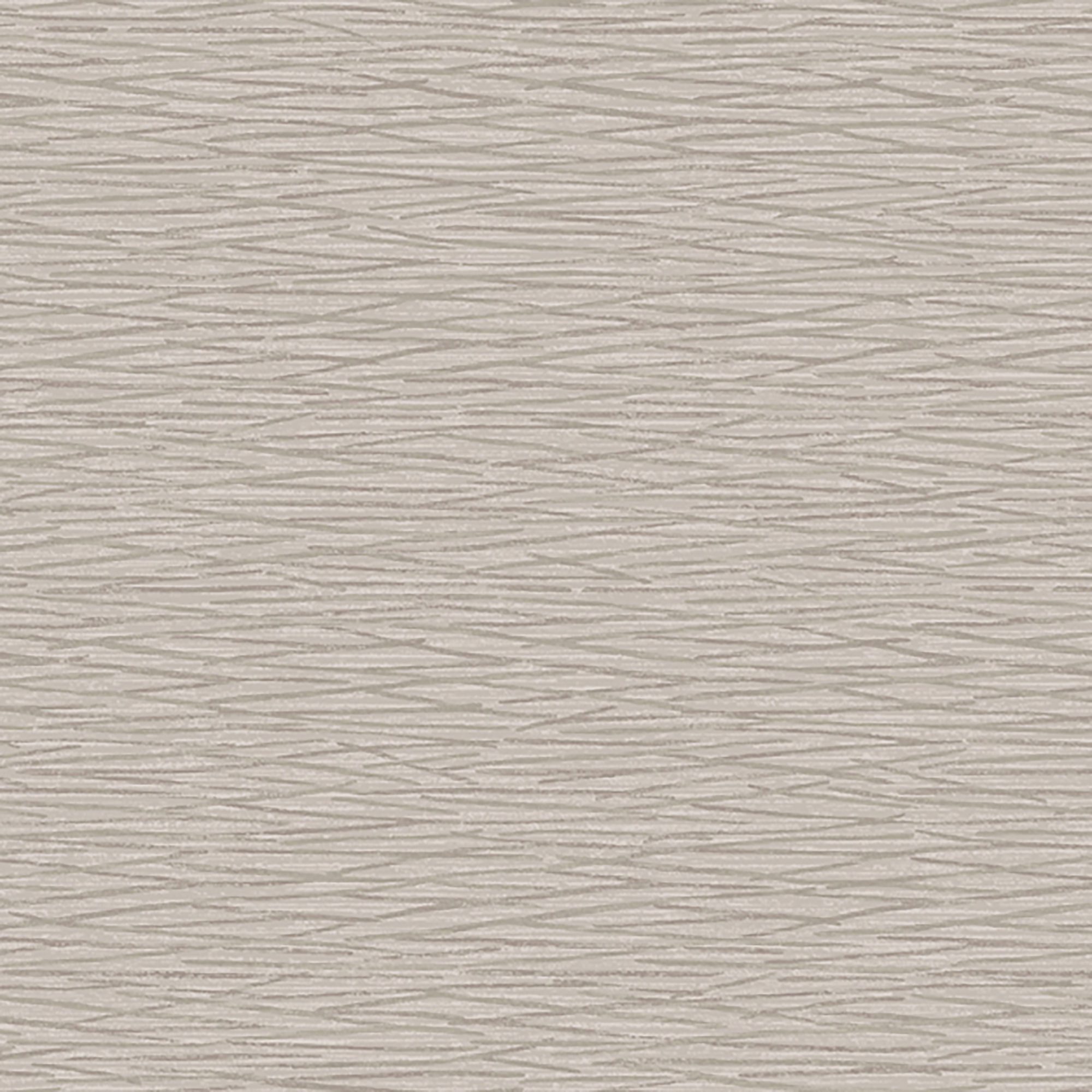This textured wallpaper features a criss cross abstract design in tones of gray on a silver metallic background.