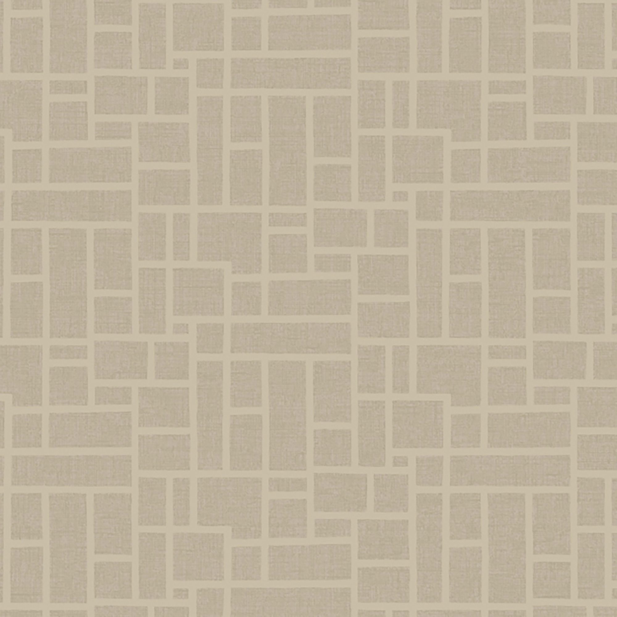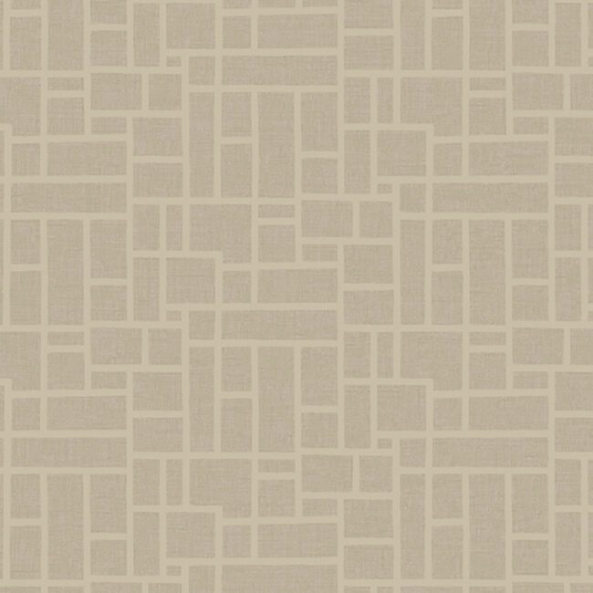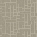 This beaded wallpaper features a geometric pattern in a gold bead on a metallic soft gold background.