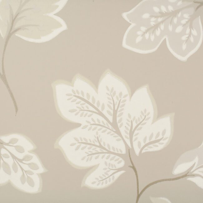 Add some flair to a room with this lively botanical wallpaper. Matte finish in tones of ivory, taupe and gray.