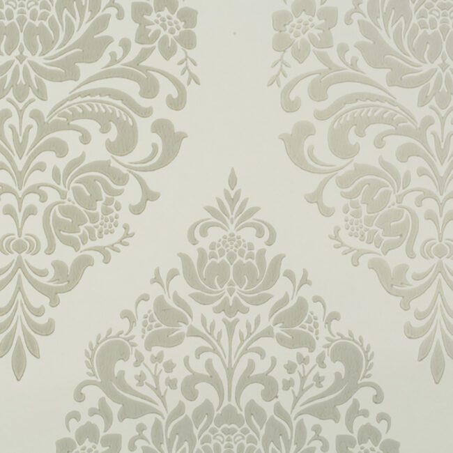 Sophisticated modern style damask wallpaper, adds beauty to any wall with it's neutral shades of ivory and gray.