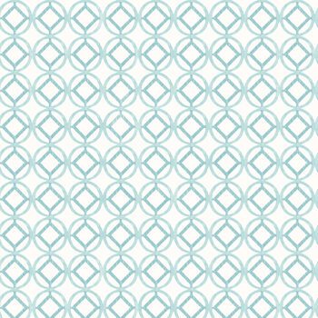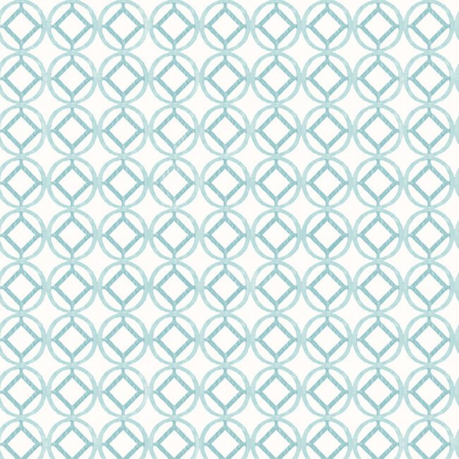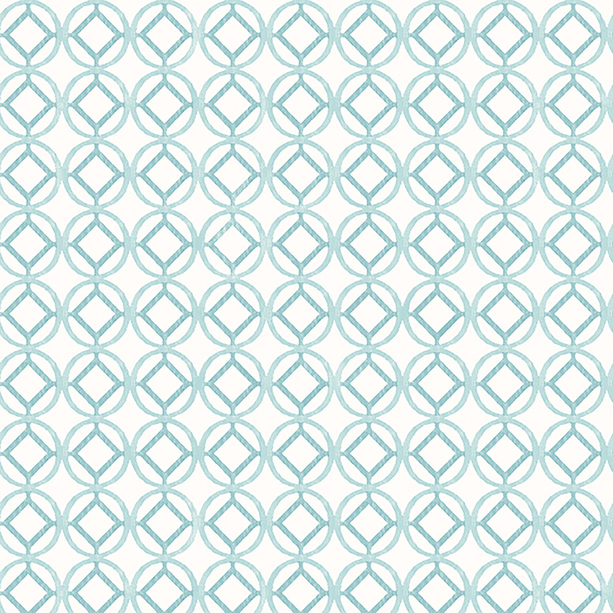 This geometric wallpaper features soft tones of spa blue on a white backing.