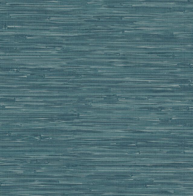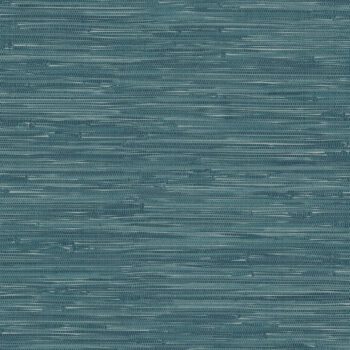 A natural looking faux grasscloth wallpaper. In teal blue coloration.