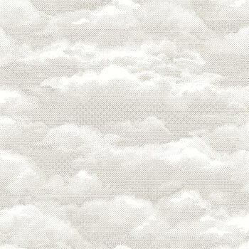 This wallpaper is constructed of tiny dots creating an abstract cloud like design, where one can dream peacefully amidst them. In a neutral grey and ivory coloration.
