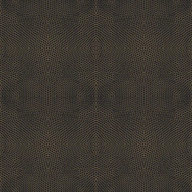 Textured faux snakeskin wallpaper with metallic in an espresso and gold coloration.