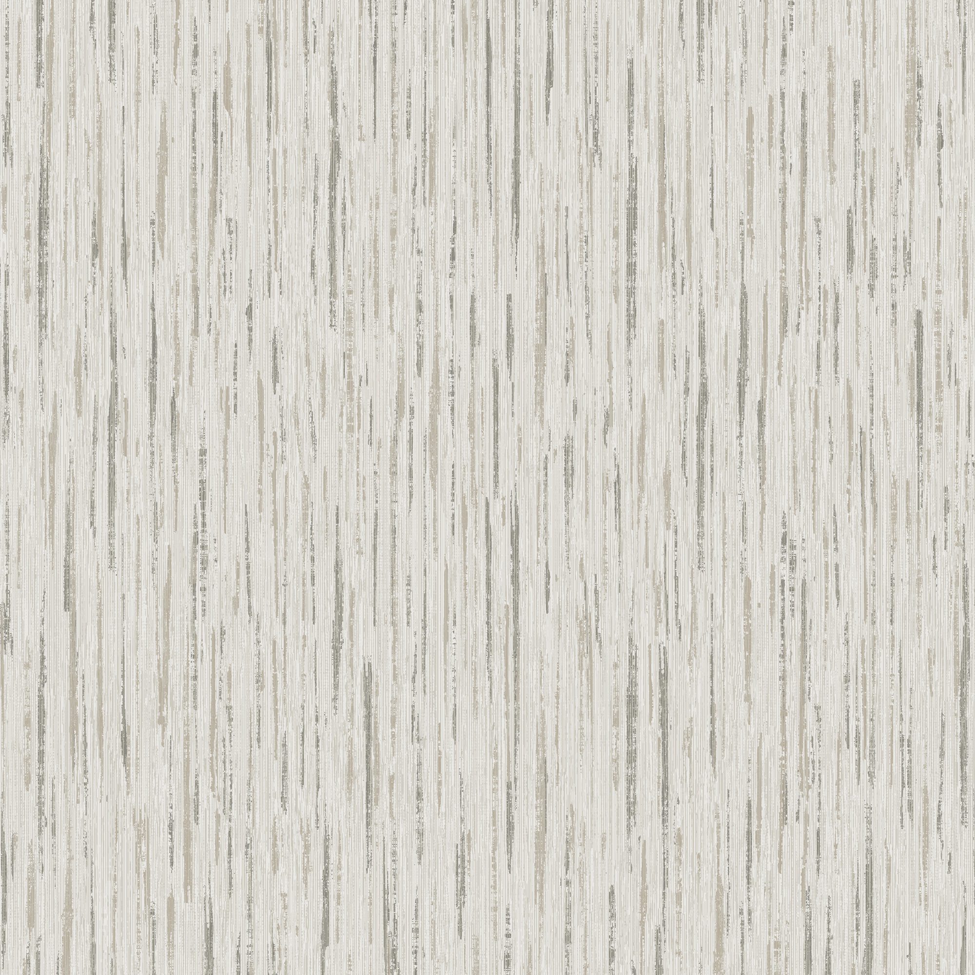 Shimmering metallic straie stripe wallpaper, in hues of gray, taupe and silver coloration.