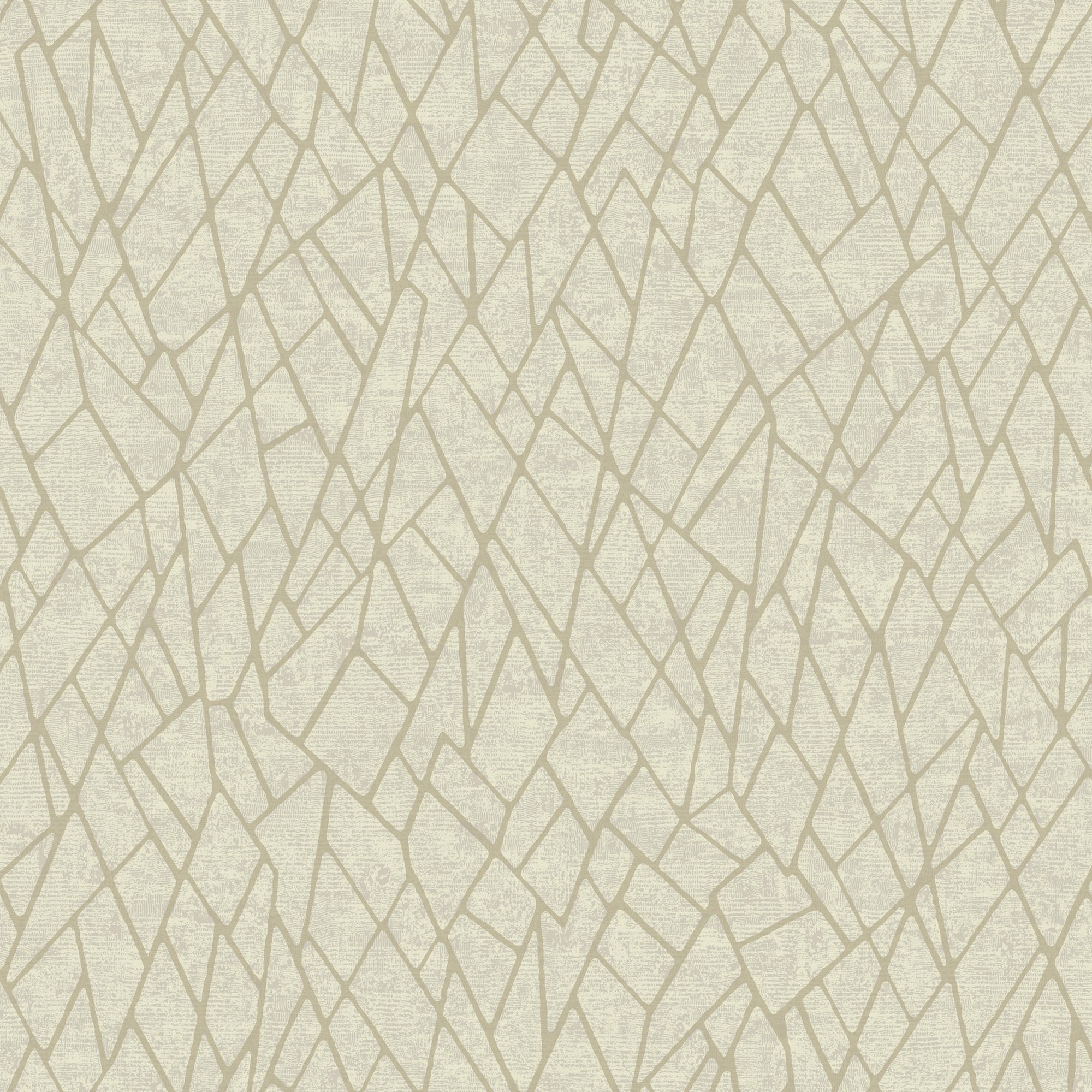 A stunning beaded wallpaper with a crackled geo design on a metallic ground. In a sparkling citrus yellow coloration.