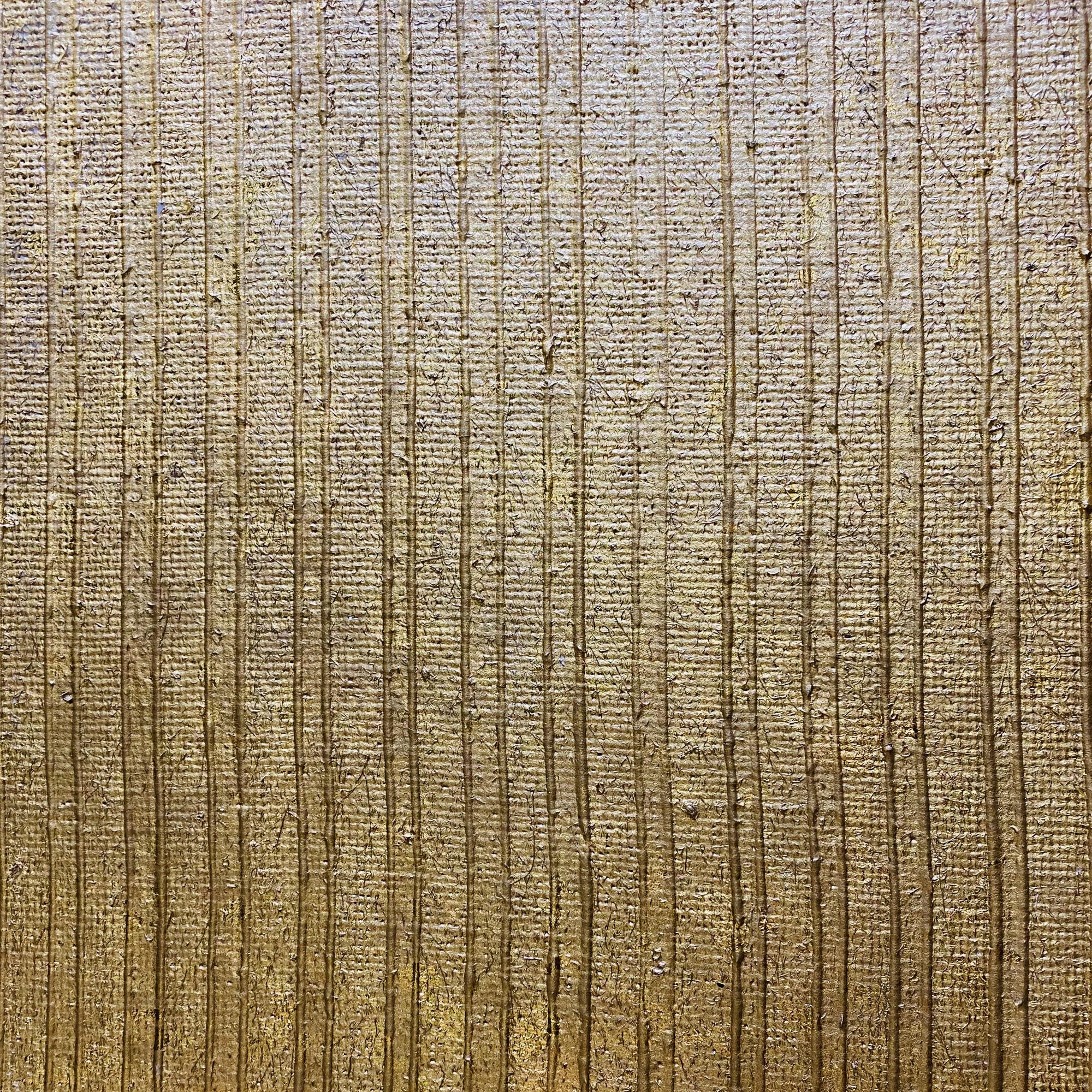 Beautiful vertical stripe pattern on a textural metallic hessian cloth ground. A gold and brown coloration. Hand crafted by artisans, no two rolls are alike and intricacies between these are part of the inherent beauty of the wallcovering.